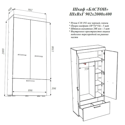 Шкаф Бастон (Эра) продается в интернет-магазине mebel-online-kovrov.ru по цене 12 434 руб. Есть доставка по Коврову и Владимирской области. Возможность подъема на этаж и сборки уточняйте у менеджера по телефону 8(800)505-27-11.