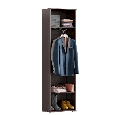 Створка шкафа может вешаться как на правую, так и на левую сторону. Шкаф имеет секцию с выдвижной штангой и полками. Для дополнительной фиксации шкаф следует крепить к стене на плоские навесы посредством дюбель гвоздей.