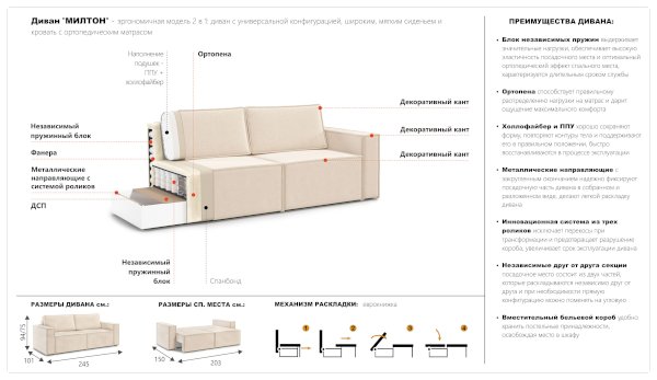 Диван Милтон (Империал) продается в интернет-магазине mebel-online-kovrov.ru по цене 60 770 руб. Есть доставка по Коврову и Владимирской области. Возможность подъема на этаж и сборки уточняйте у менеджера по телефону 8(800)505-27-11.